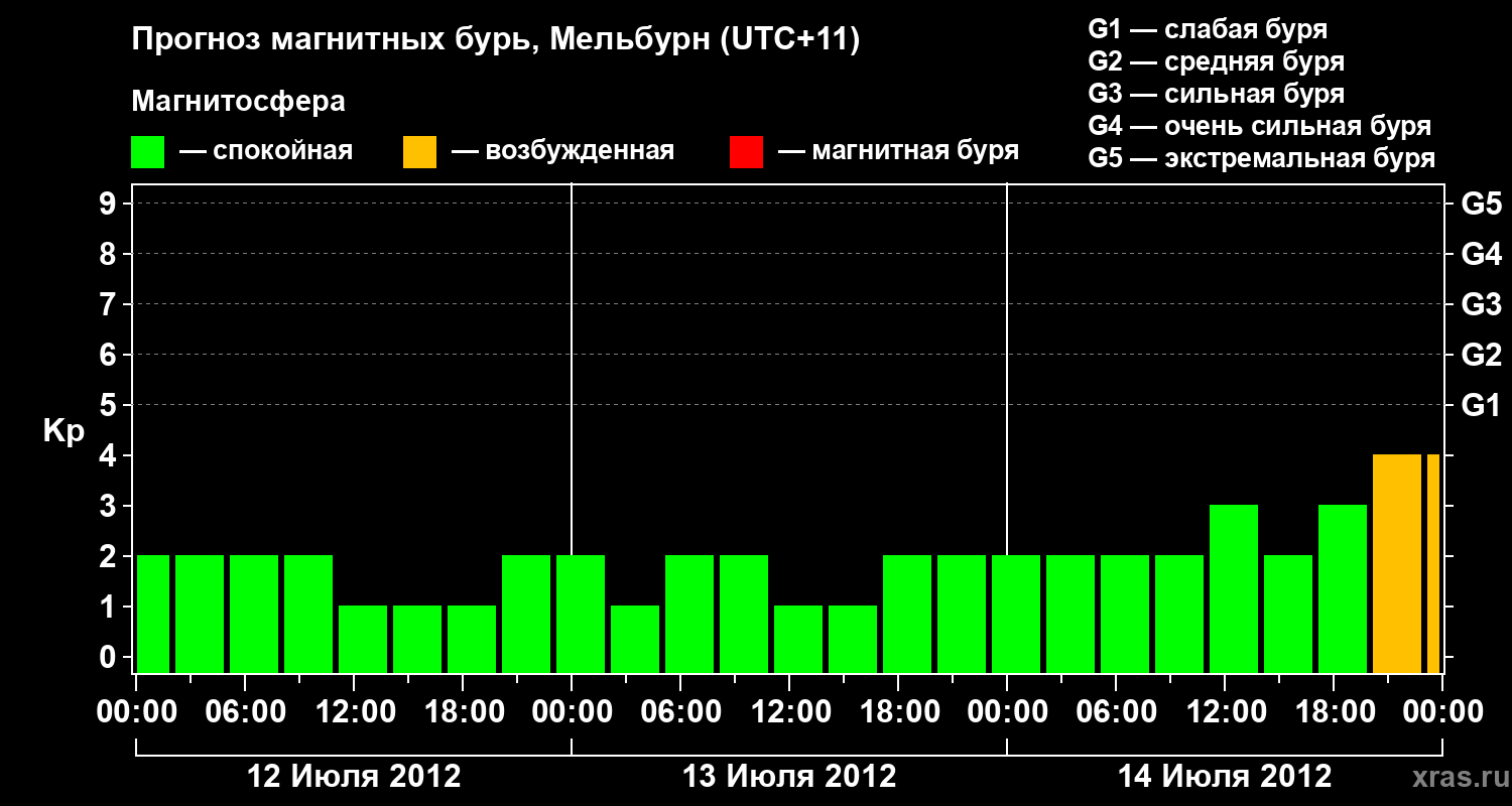 Прогноз магнитных бурь в Мельбурне — 12 июля 2012 года