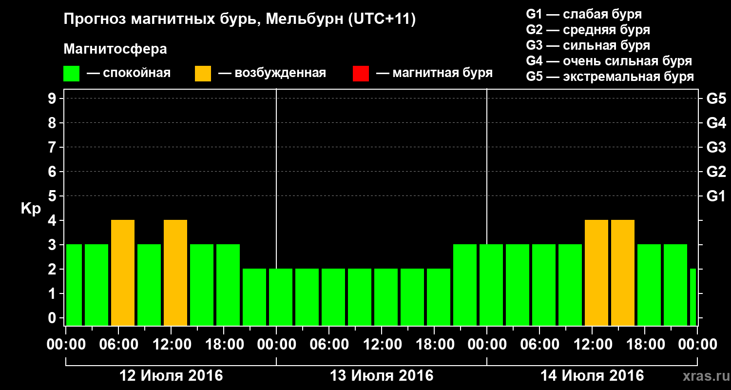 Прогноз магнитных бурь в Мельбурне на 12 июля 2016 года