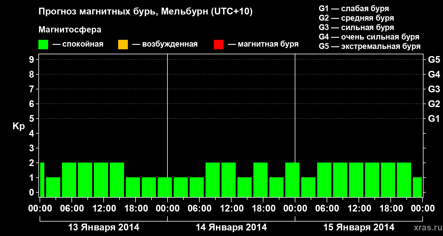Прогноз магнитных бурь в Мельбурне — 13 января 2014 года