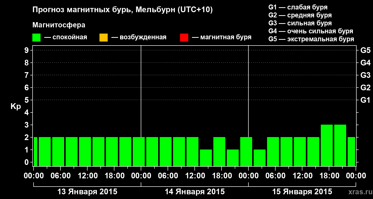 Прогноз магнитных бурь в Мельбурне — 13 января 2015 года