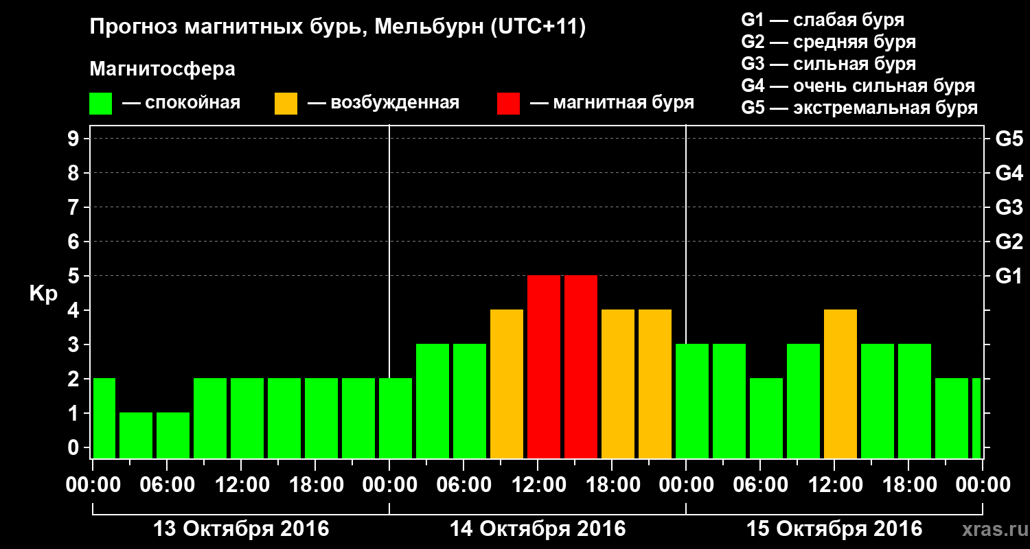Прогноз магнитных бурь в Мельбурне — 13 октября 2016 года