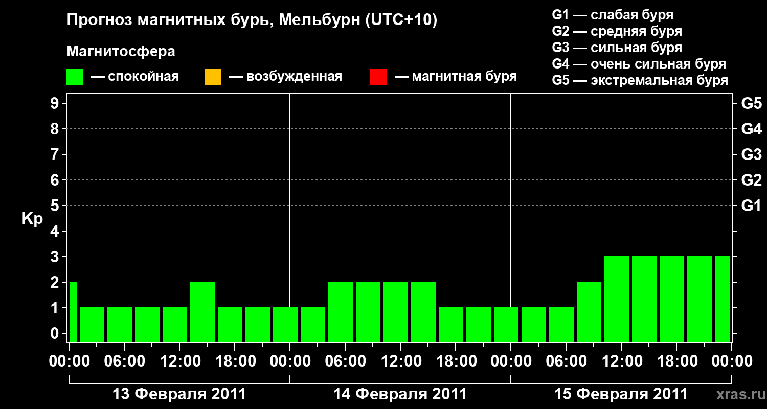 Прогноз магнитных бурь в Мельбурне — 13 февраля 2011 года