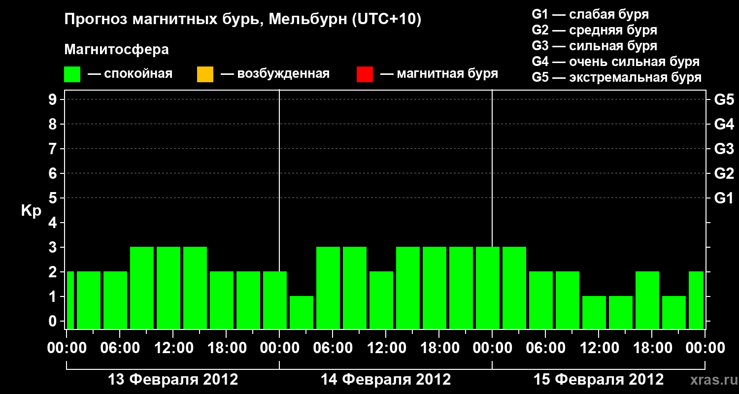 Прогноз магнитных бурь в Мельбурне — 13 февраля 2012 года
