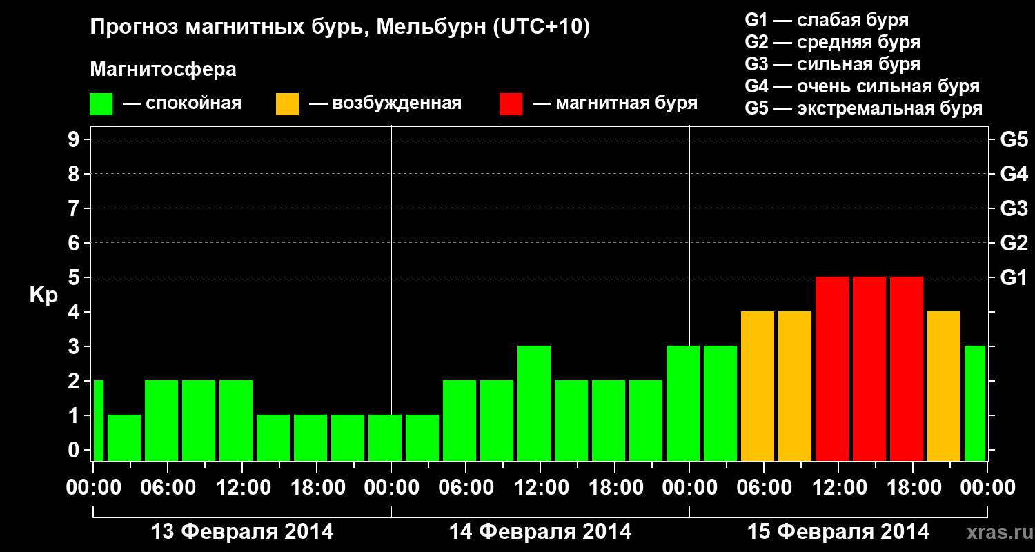 Прогноз магнитных бурь в Мельбурне — 13 февраля 2014 года