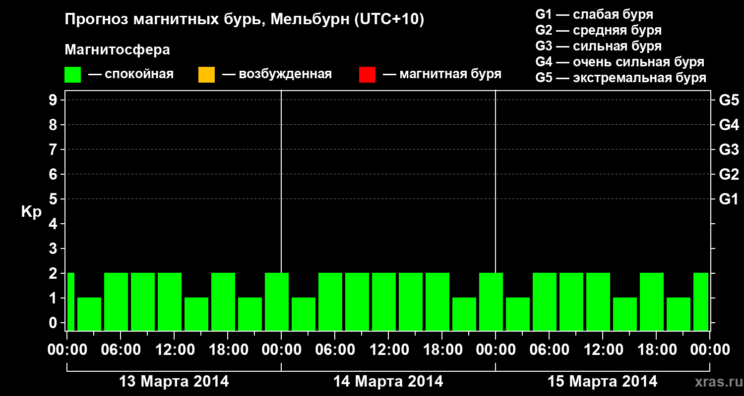 Прогноз магнитных бурь в Мельбурне — 13 марта 2014 года
