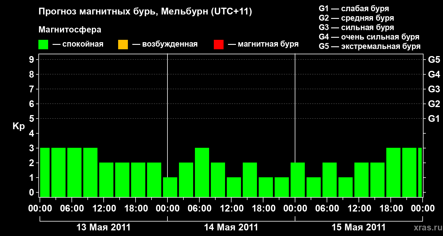 Прогноз магнитных бурь в Мельбурне — 13 мая 2011 года