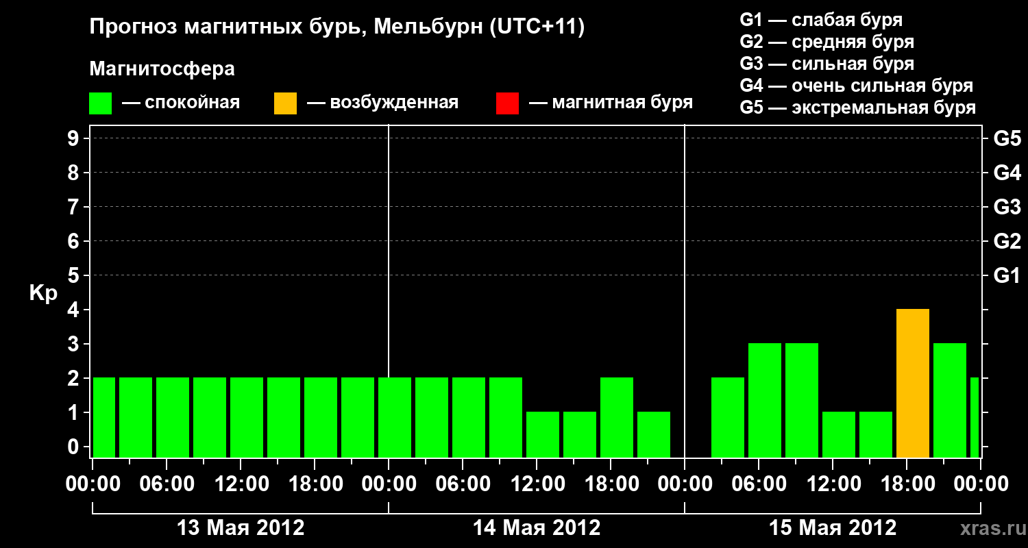 Прогноз магнитных бурь в Мельбурне — 13 мая 2012 года