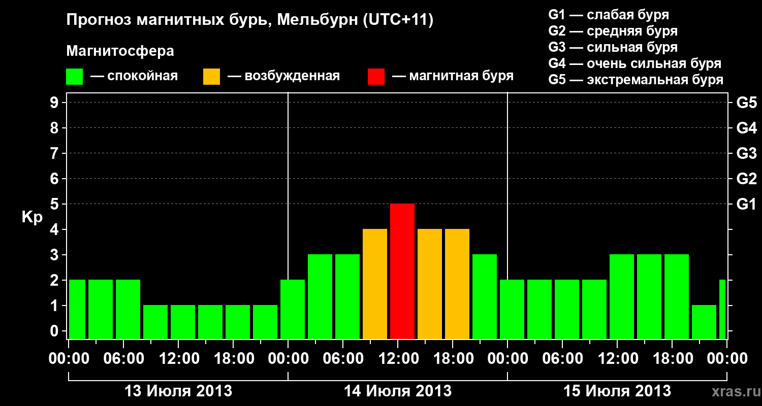 Прогноз магнитных бурь в Мельбурне — 13 июля 2013 года
