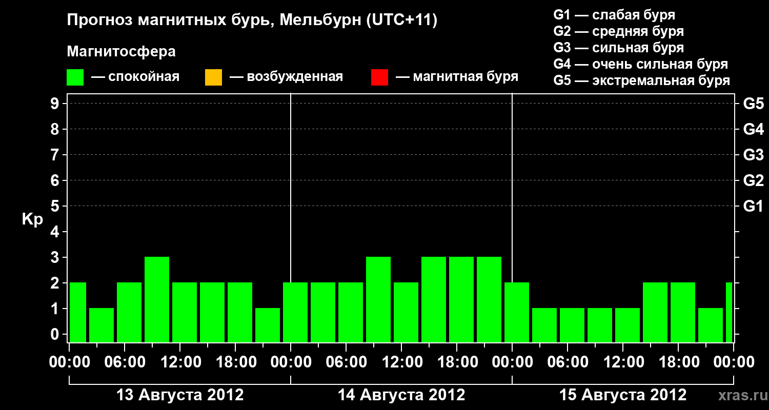 Прогноз магнитных бурь в Мельбурне — 13 августа 2012 года
