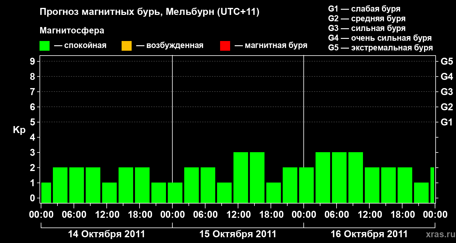Прогноз магнитных бурь в Мельбурне — 14 октября 2011 года