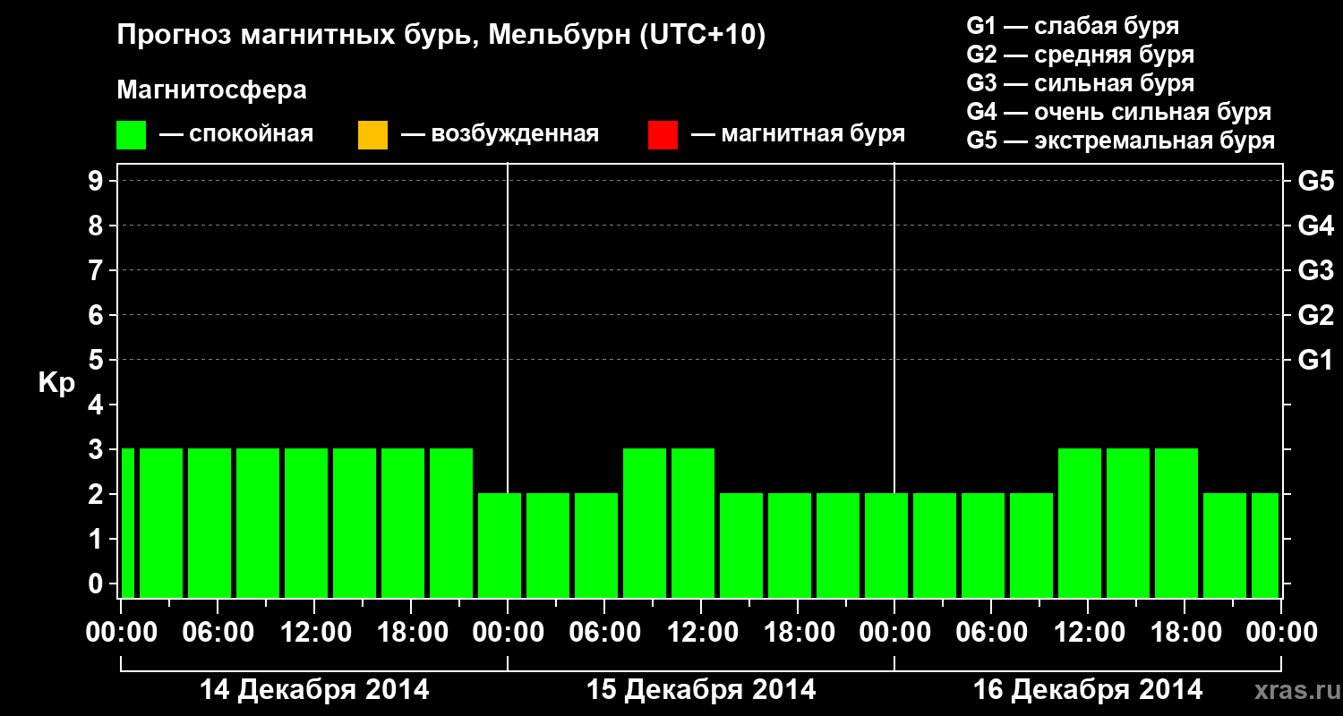 Прогноз магнитных бурь в Мельбурне — 14 декабря 2014 года
