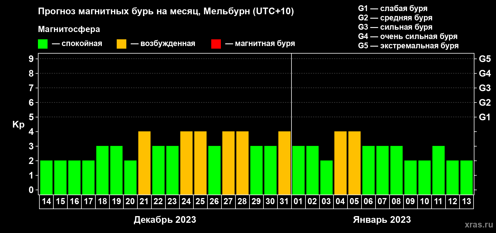 Прогноз магнитных бурь в Мельбурне — 14 декабря 2022 года