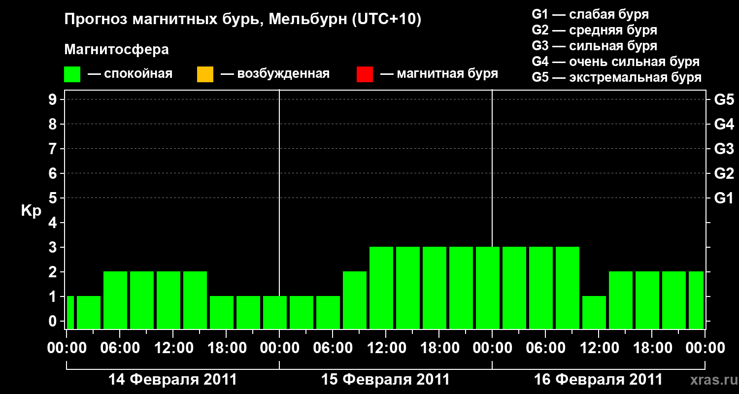 Прогноз магнитных бурь в Мельбурне — 14 февраля 2011 года