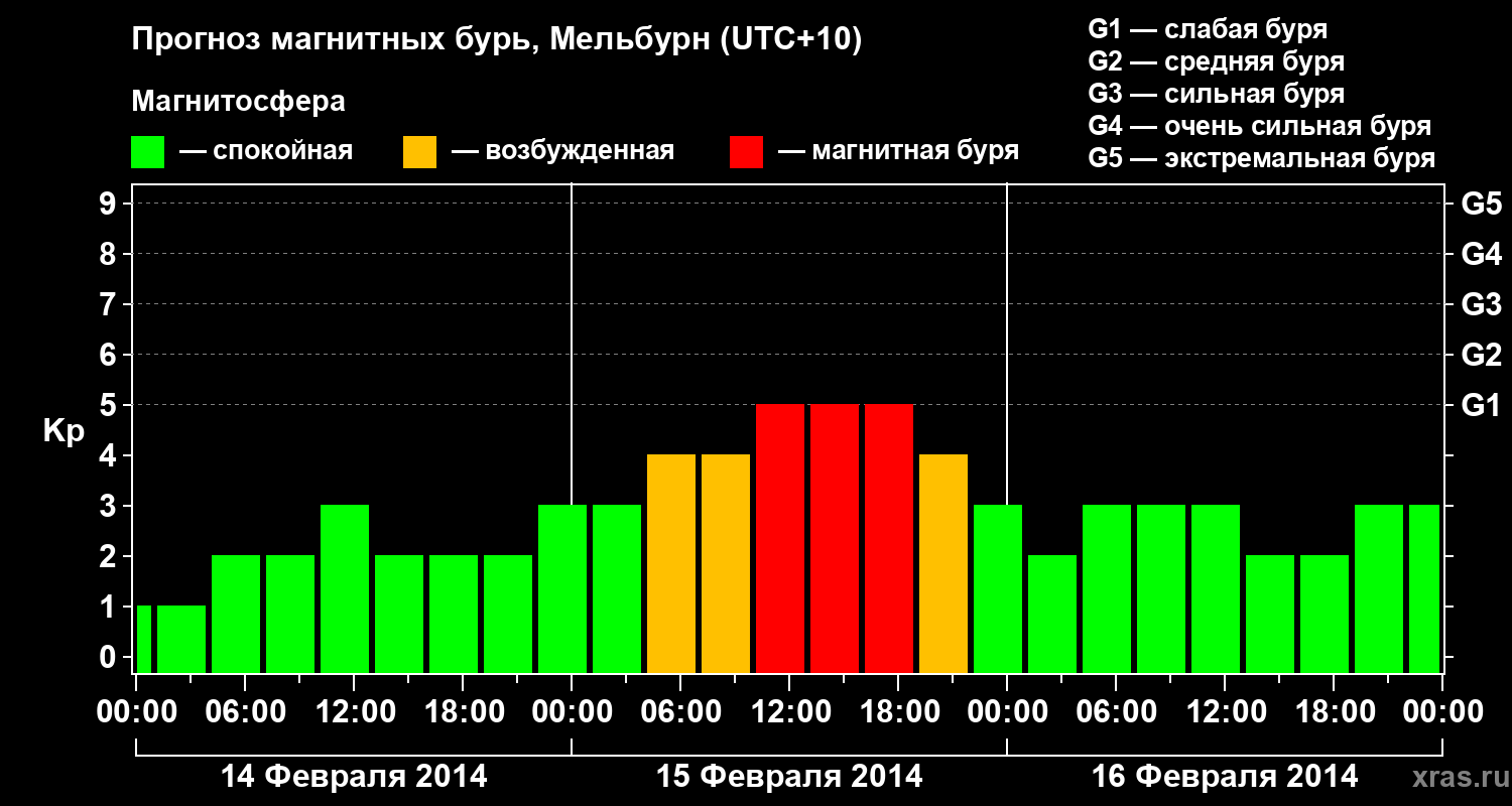 Прогноз магнитных бурь в Мельбурне — 14 февраля 2014 года