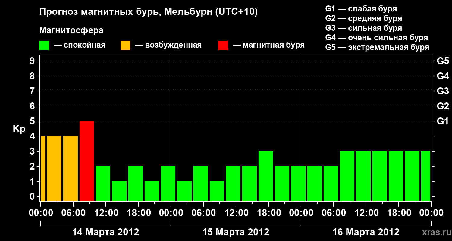 Прогноз магнитных бурь в Мельбурне — 14 марта 2012 года