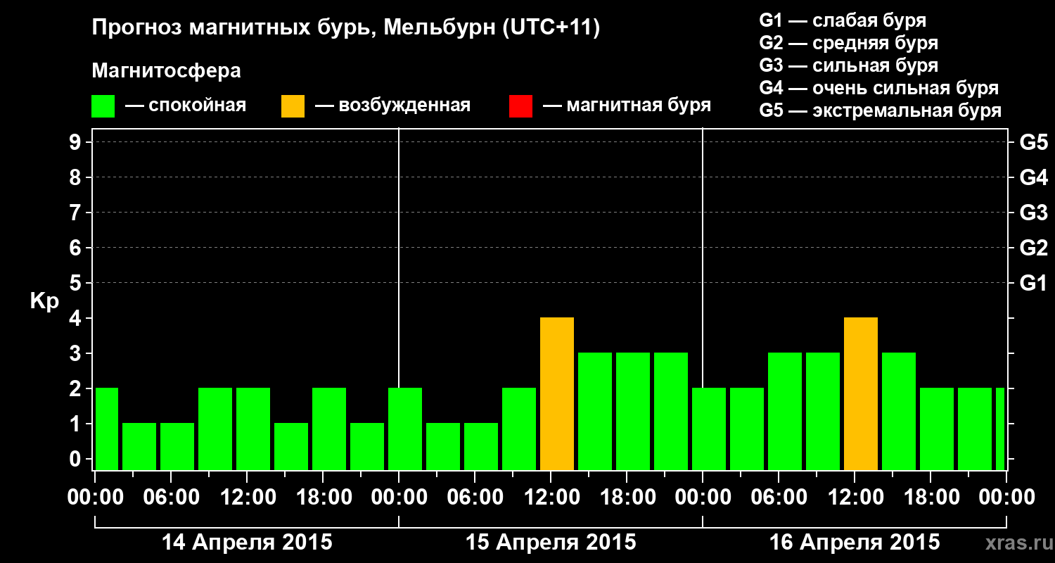 Прогноз магнитных бурь в Мельбурне — 14 апреля 2015 года
