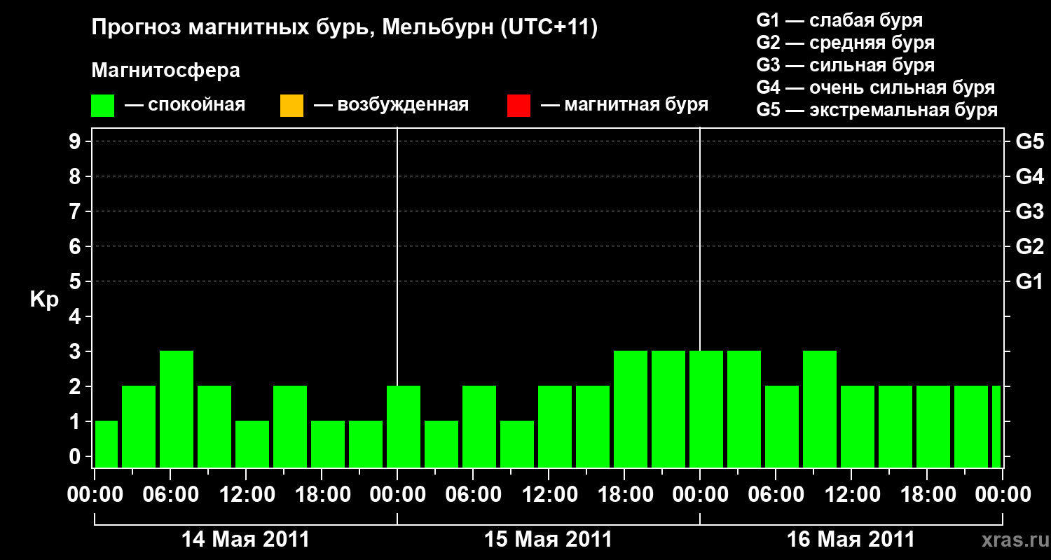 Прогноз магнитных бурь в Мельбурне — 14 мая 2011 года