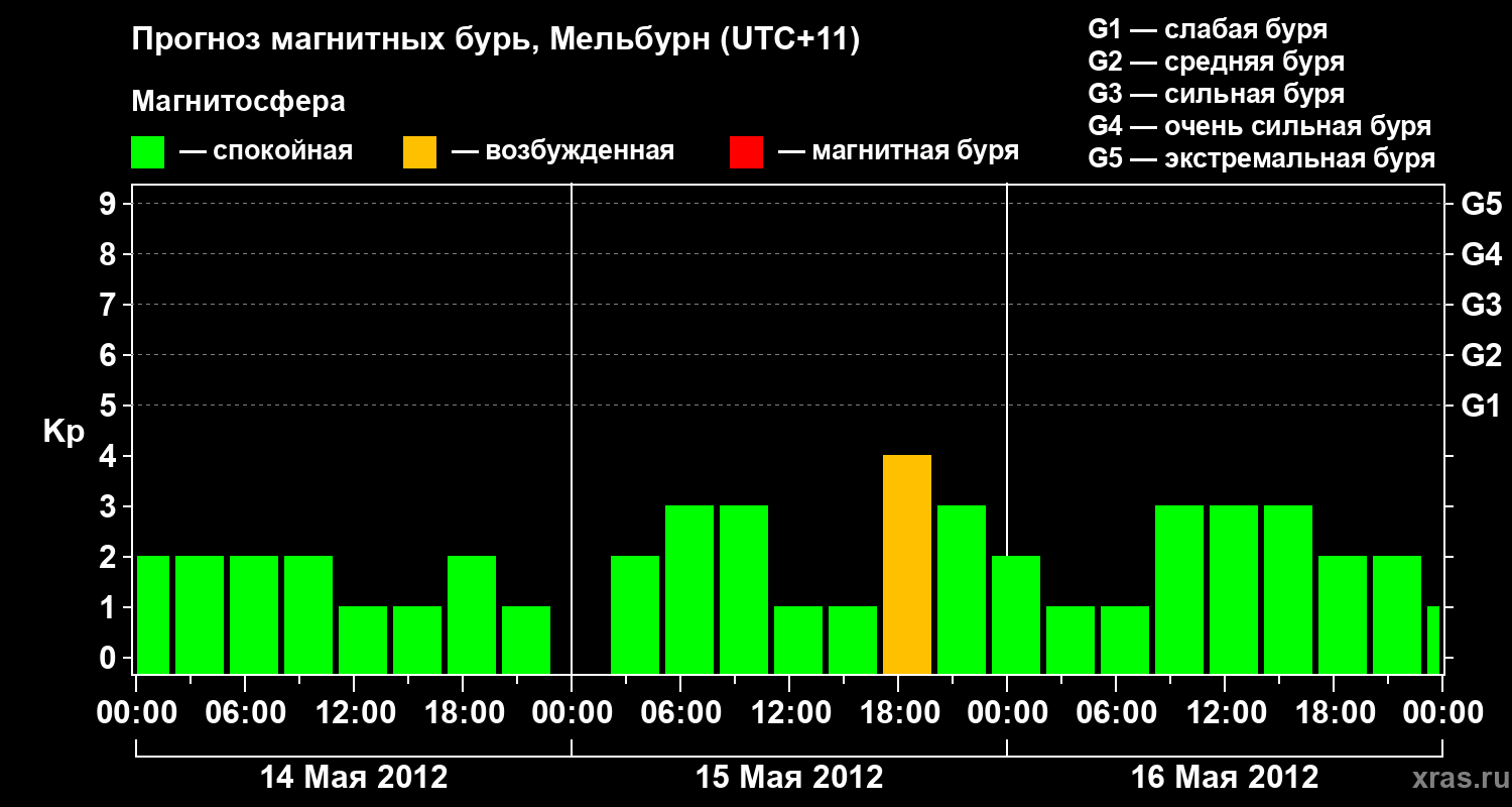 Прогноз магнитных бурь в Мельбурне — 14 мая 2012 года