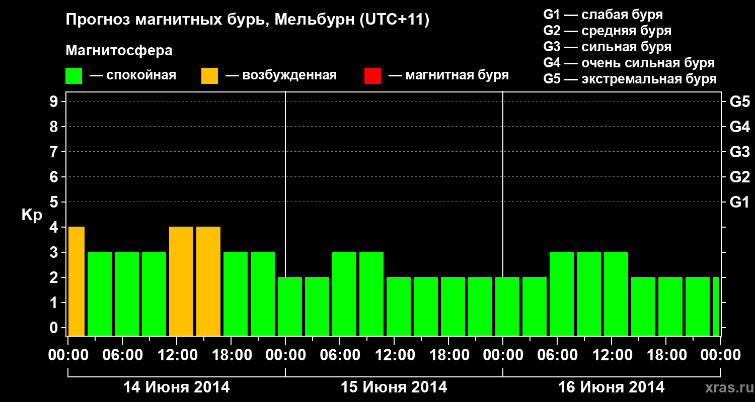 Прогноз магнитных бурь в Мельбурне — 14 июня 2014 года