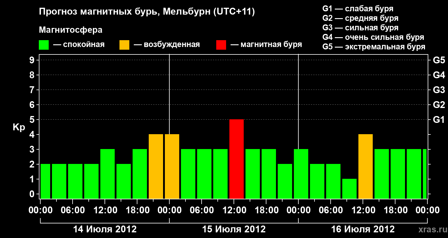 Прогноз магнитных бурь в Мельбурне на 14 июля 2012 года