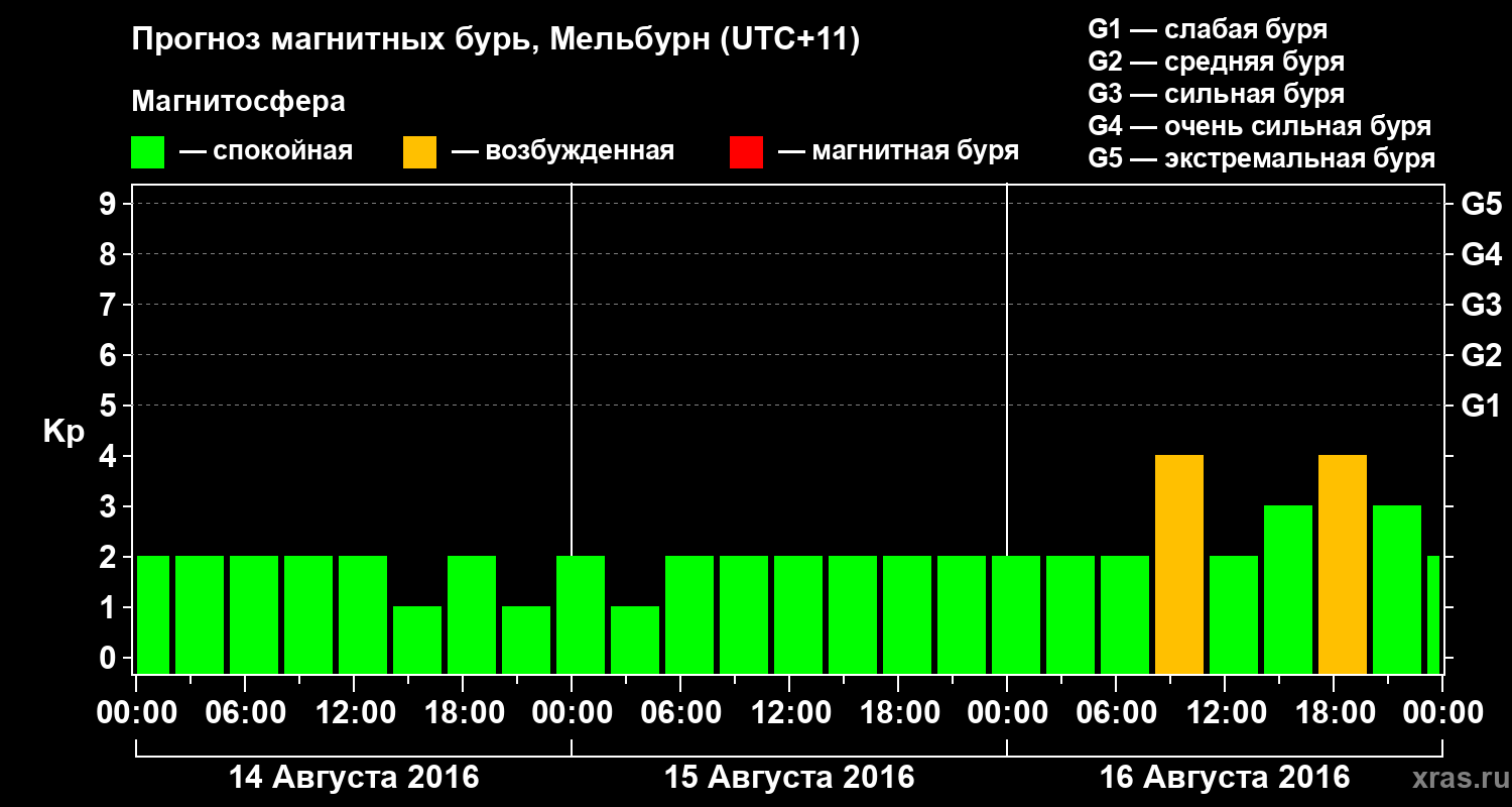 Прогноз магнитных бурь в Мельбурне — 14 августа 2016 года