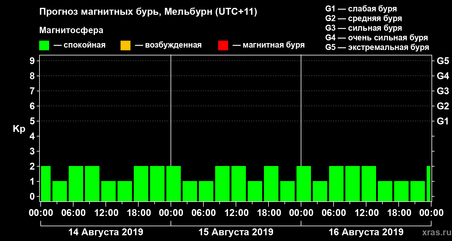 Прогноз магнитных бурь в Мельбурне — 14 августа 2019 года