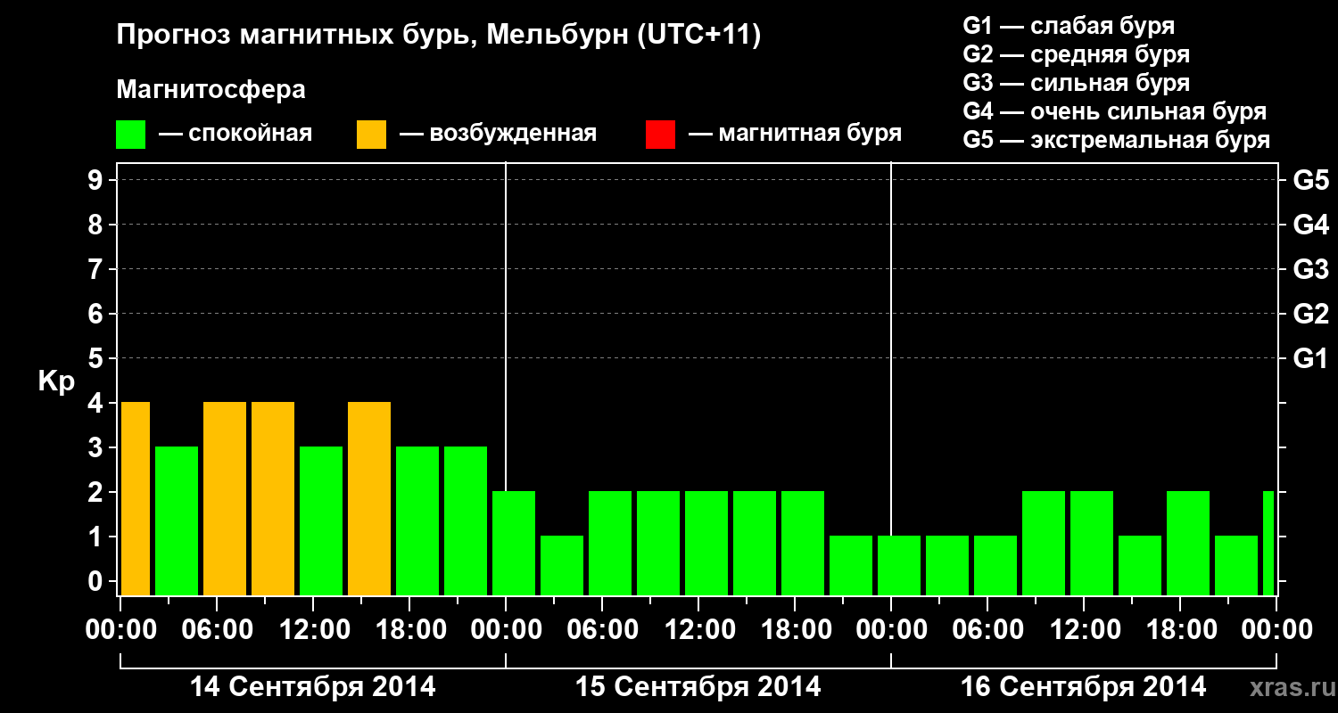 Прогноз магнитных бурь в Мельбурне на 14 сентября 2014 года
