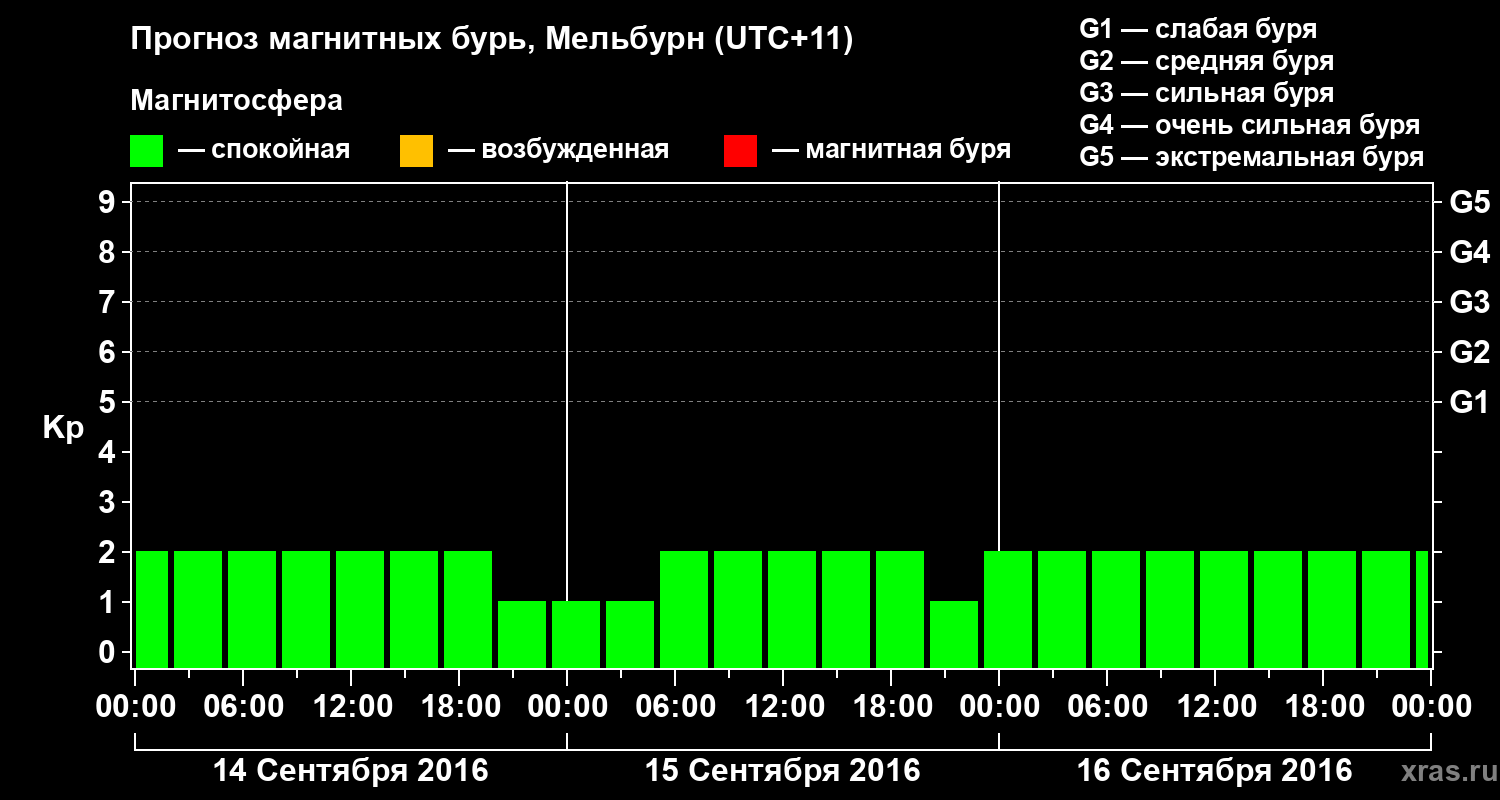 Прогноз магнитных бурь в Мельбурне — 14 сентября 2016 года