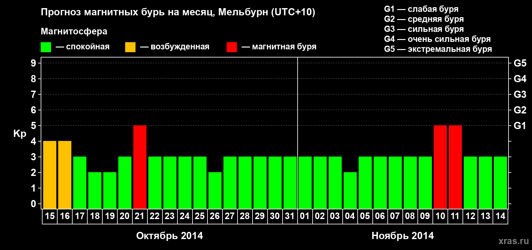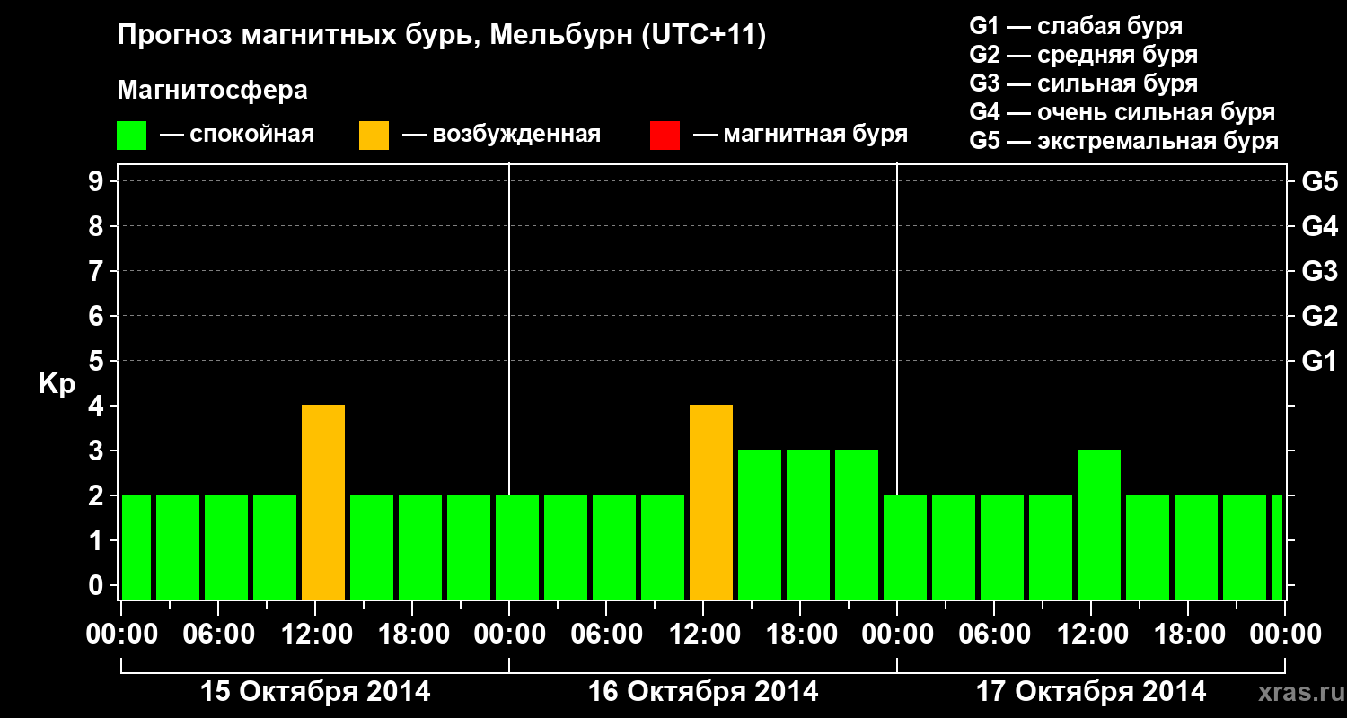 Прогноз магнитных бурь в Мельбурне — 15 октября 2014 года
