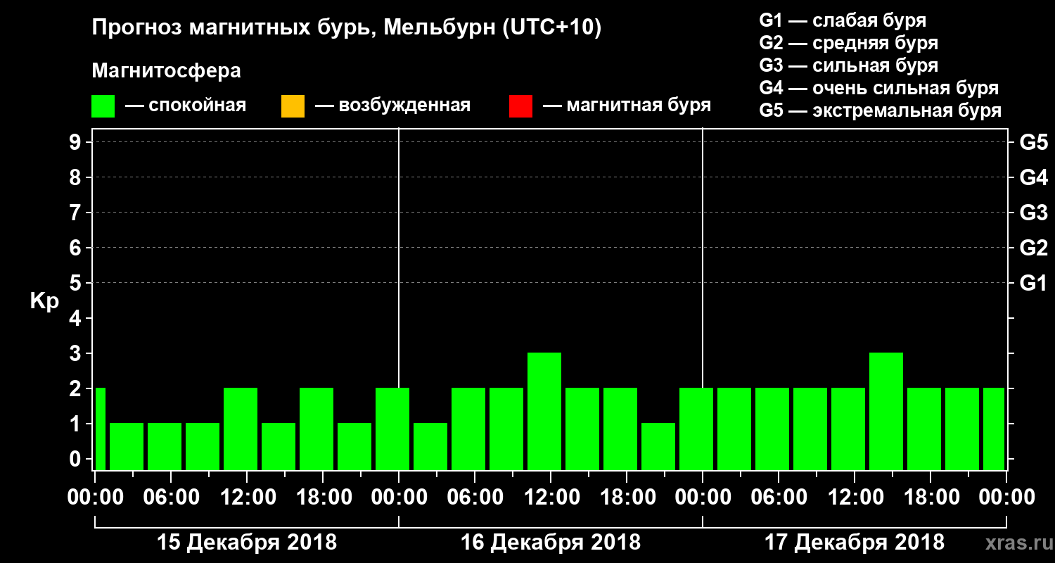 Прогноз магнитных бурь в Мельбурне — 15 декабря 2018 года