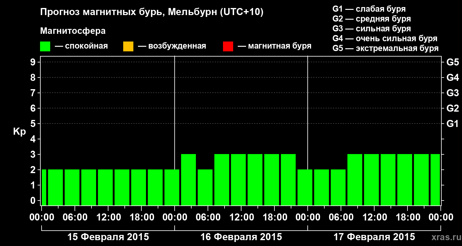 Прогноз магнитных бурь в Мельбурне — 15 февраля 2015 года