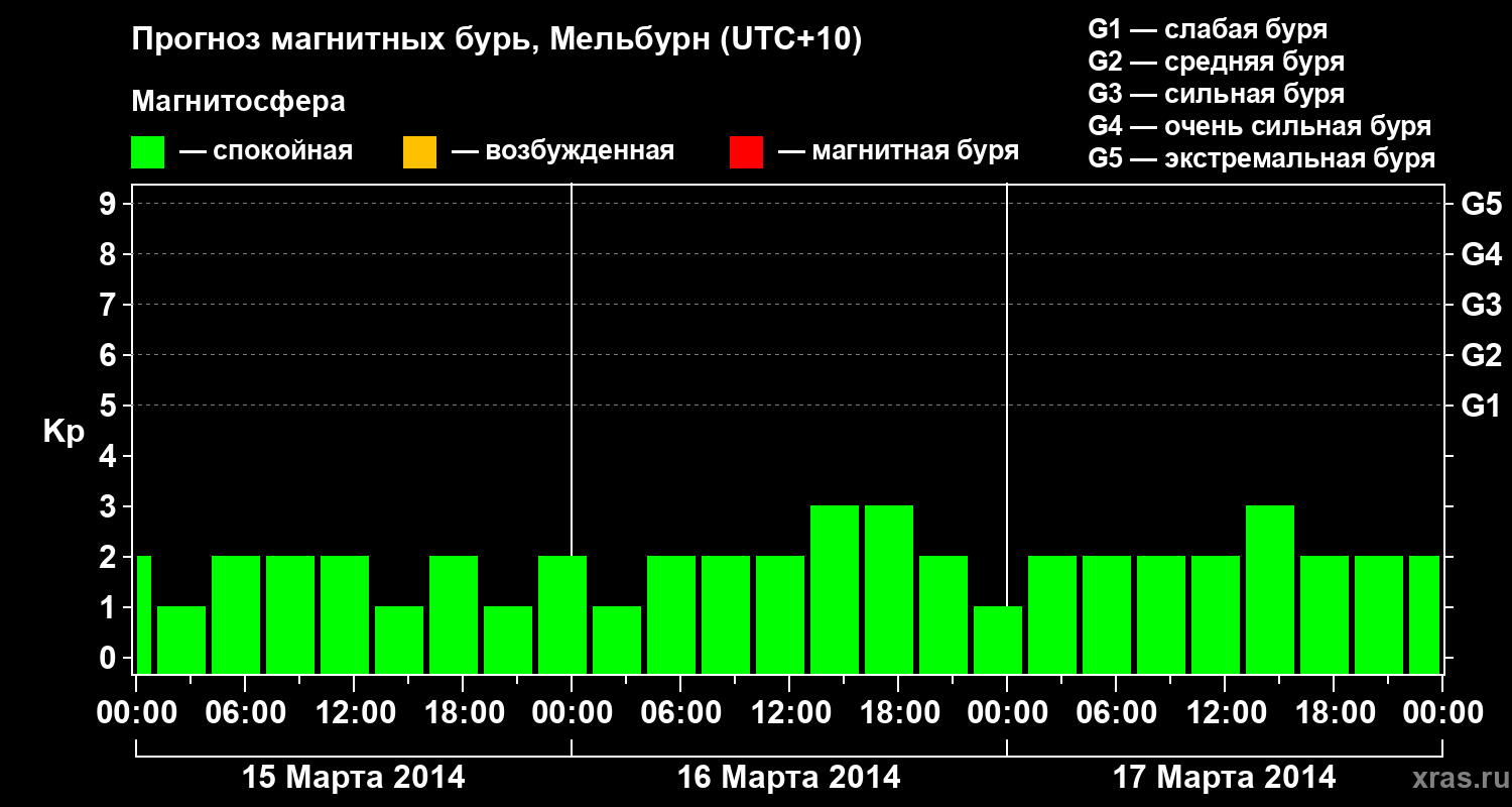 Прогноз магнитных бурь в Мельбурне — 15 марта 2014 года