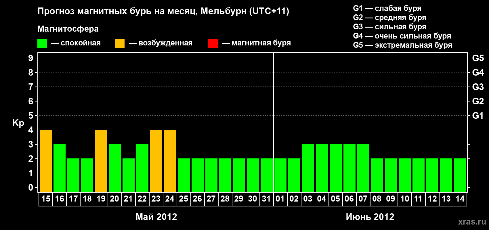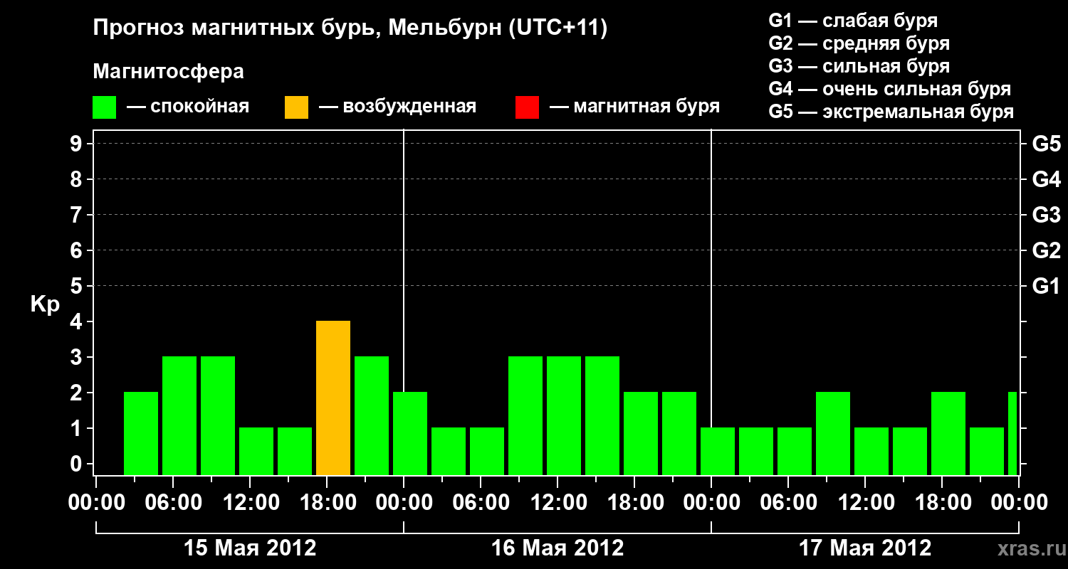 Прогноз магнитных бурь в Мельбурне — 15 мая 2012 года