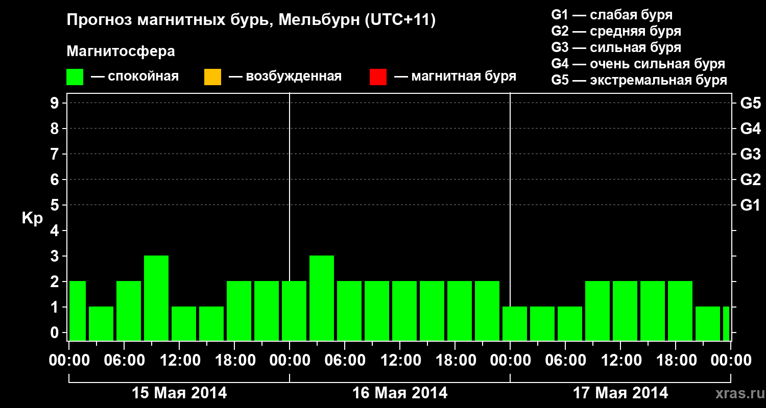 Прогноз магнитных бурь в Мельбурне — 15 мая 2014 года