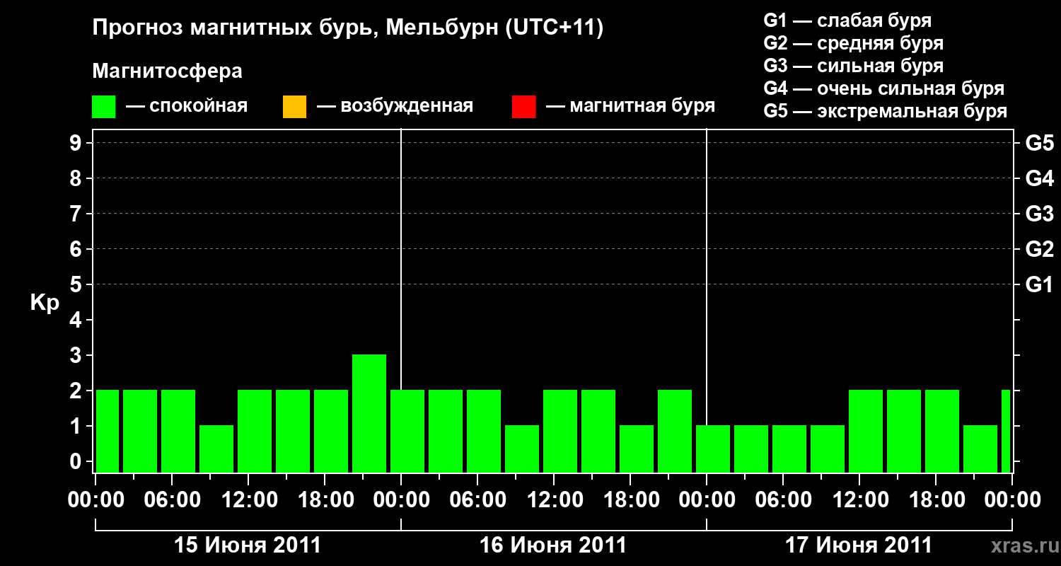 Прогноз магнитных бурь в Мельбурне — 15 июня 2011 года