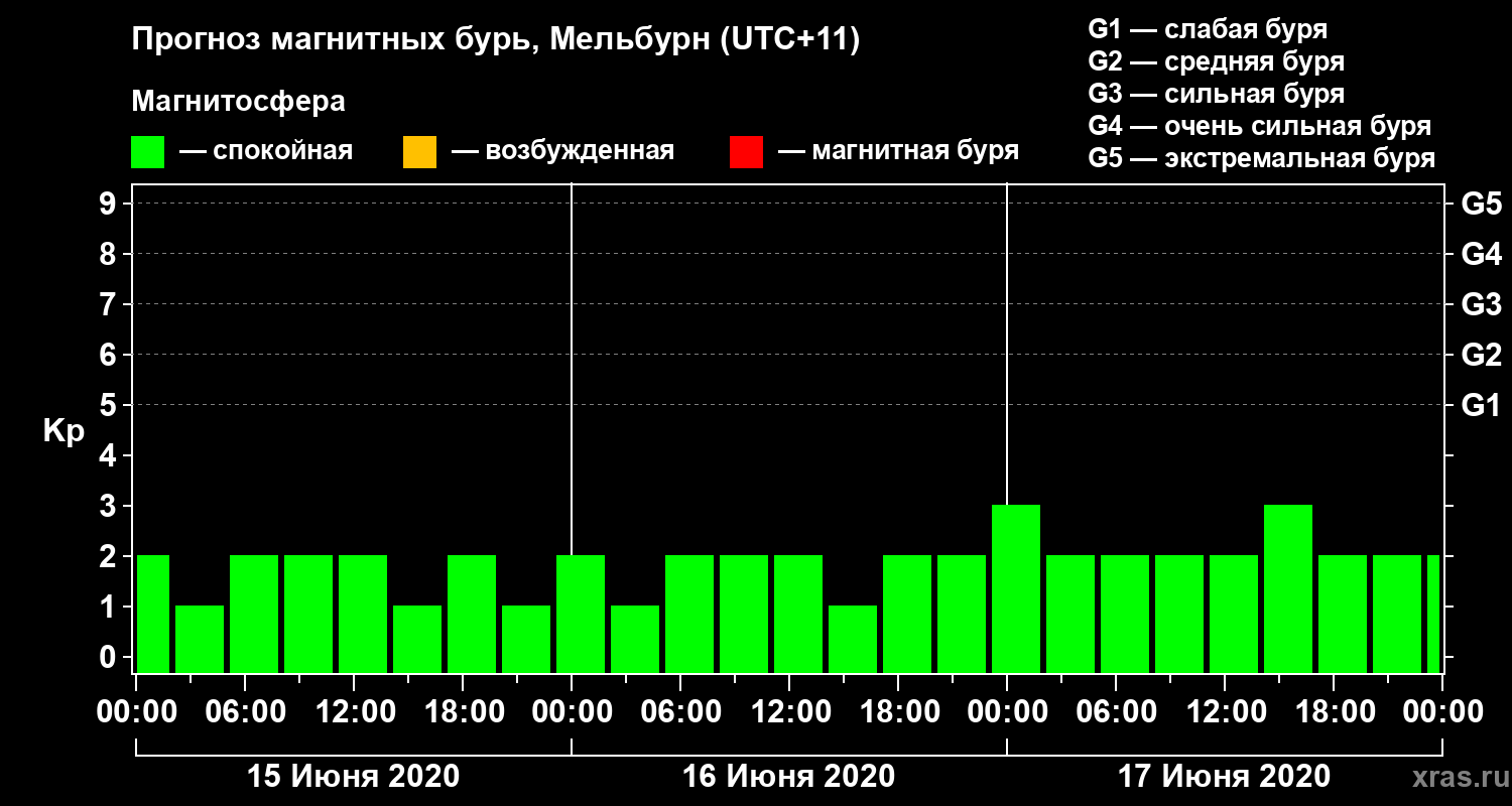 Прогноз магнитных бурь в Мельбурне — 15 июня 2020 года