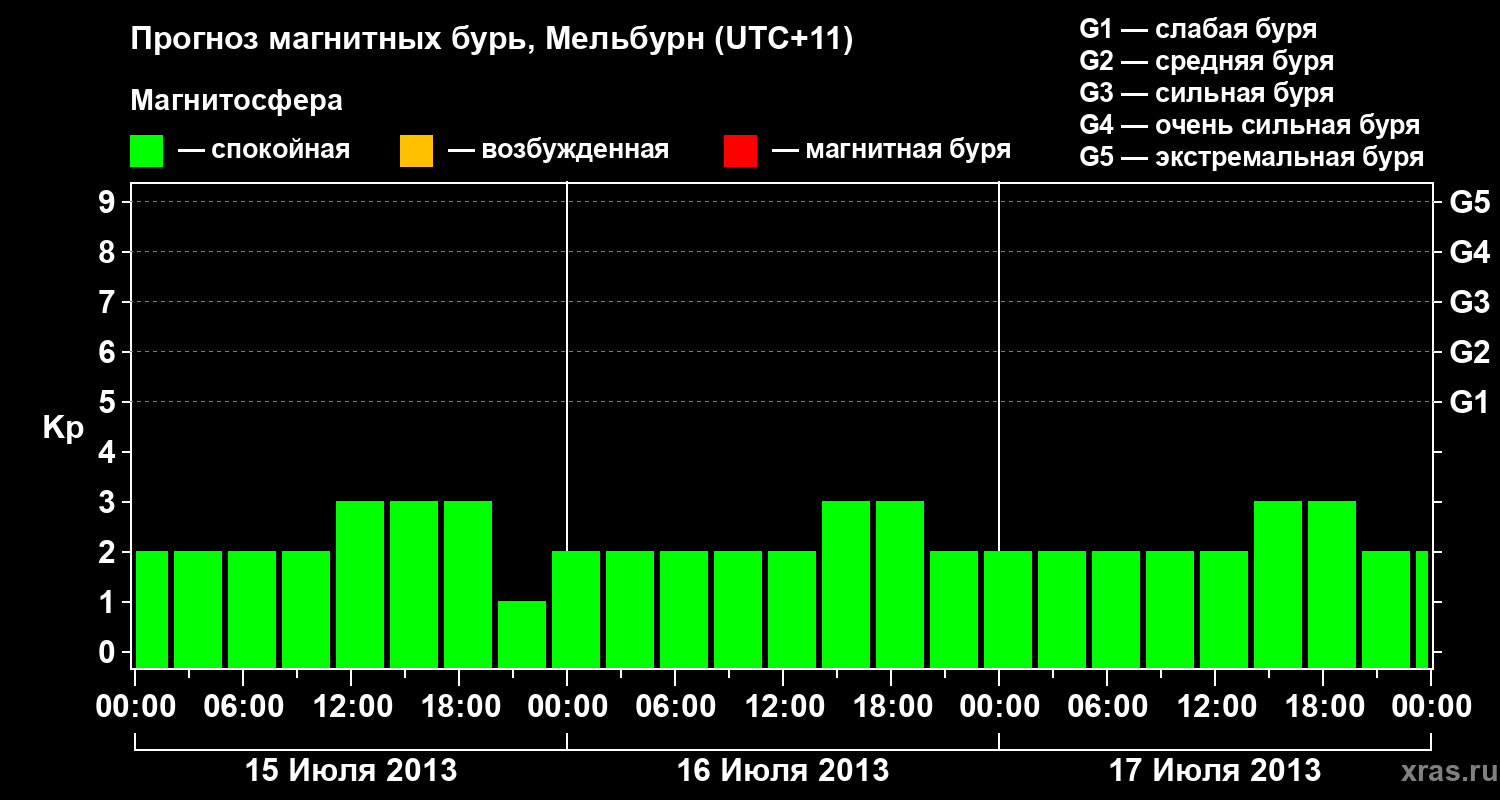 Прогноз магнитных бурь в Мельбурне на 15 июля 2013 года
