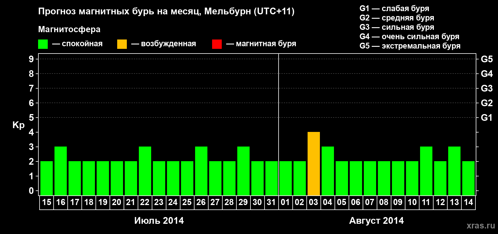 Прогноз магнитных бурь в Мельбурне — 15 июля 2014 года
