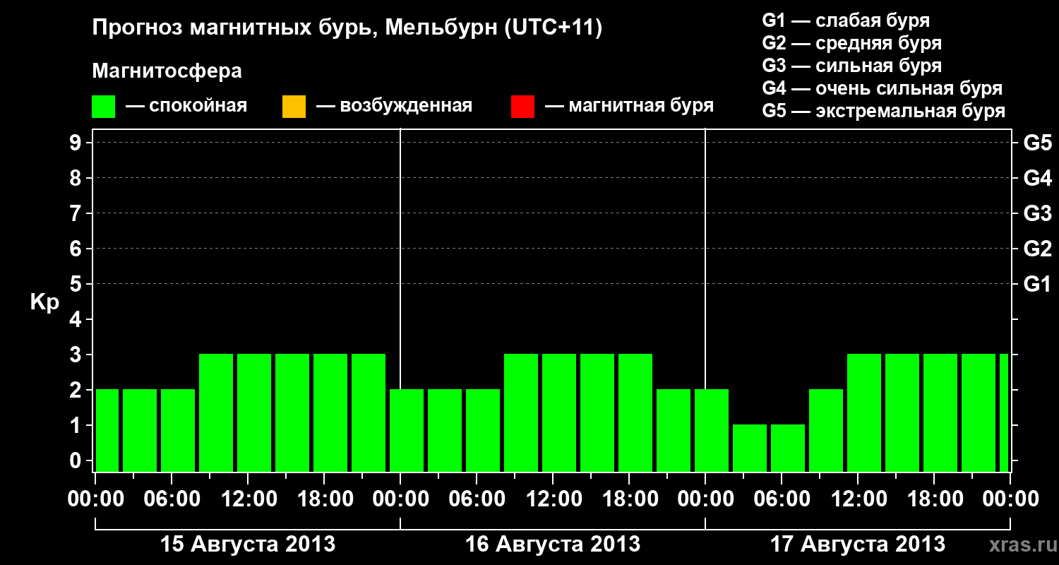 Прогноз магнитных бурь в Мельбурне — 15 августа 2013 года