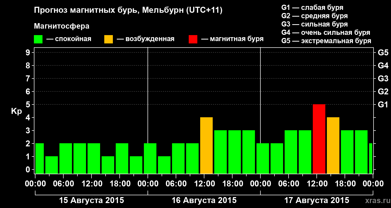 Прогноз магнитных бурь в Мельбурне — 15 августа 2015 года