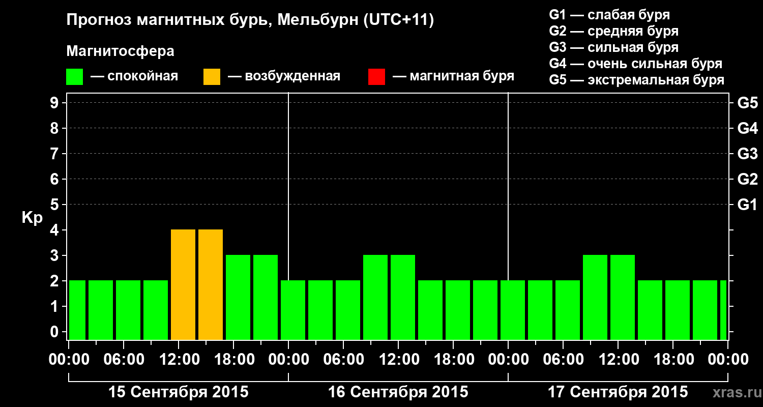 Прогноз магнитных бурь в Мельбурне — 15 сентября 2015 года