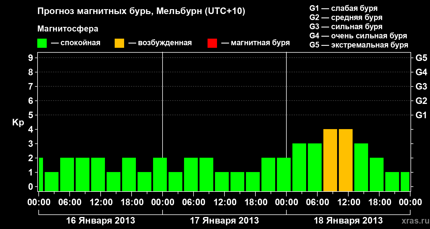 Прогноз магнитных бурь в Мельбурне — 16 января 2013 года