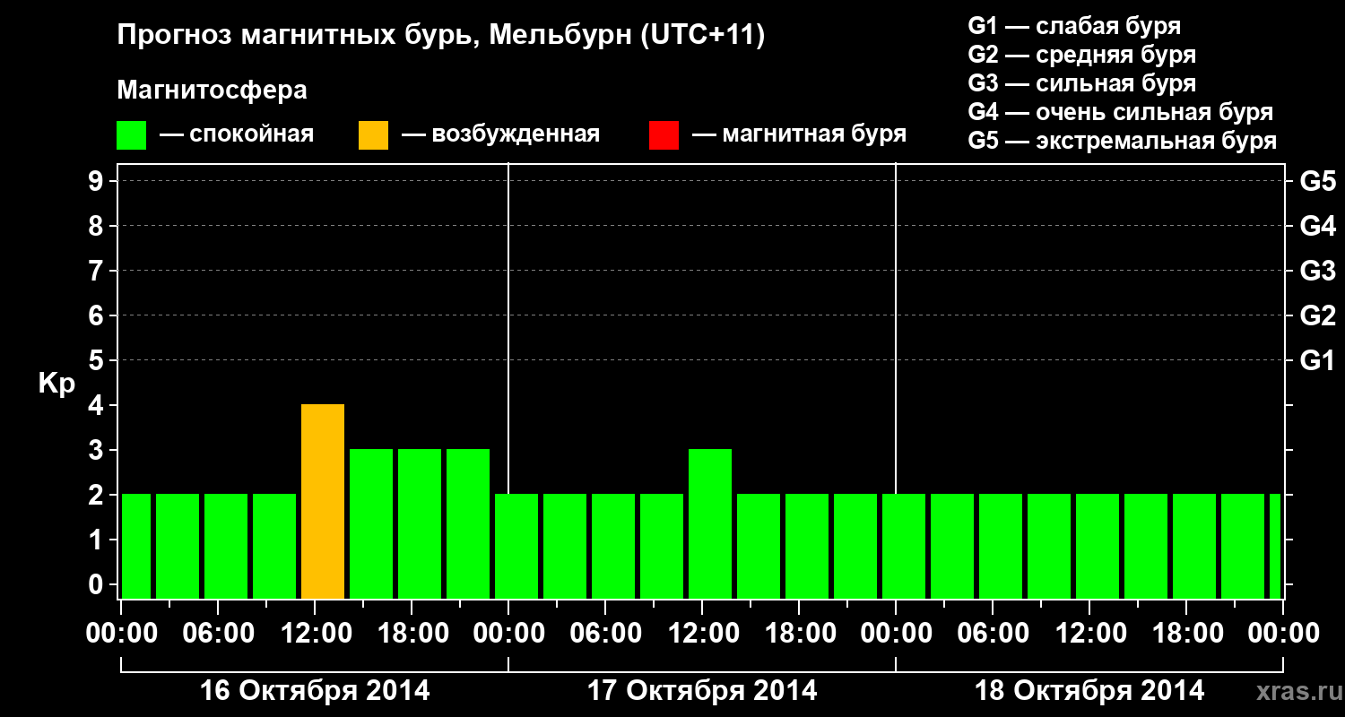 Прогноз магнитных бурь в Мельбурне — 16 октября 2014 года