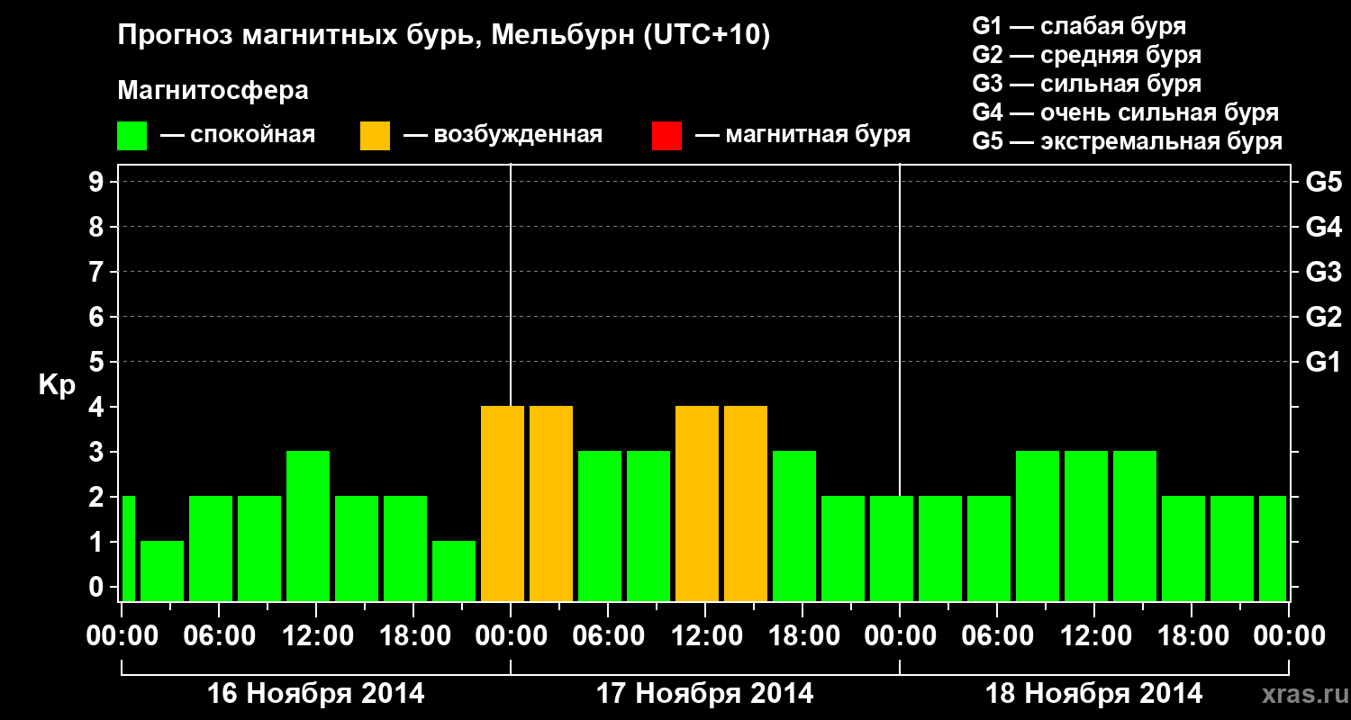 Прогноз магнитных бурь в Мельбурне — 16 ноября 2014 года