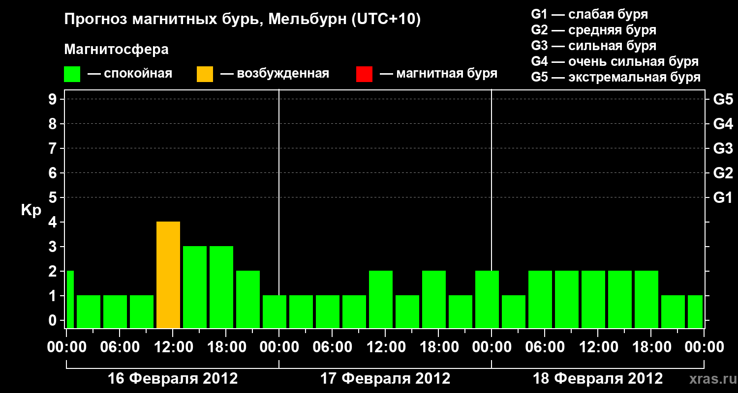 Прогноз магнитных бурь в Мельбурне — 16 февраля 2012 года