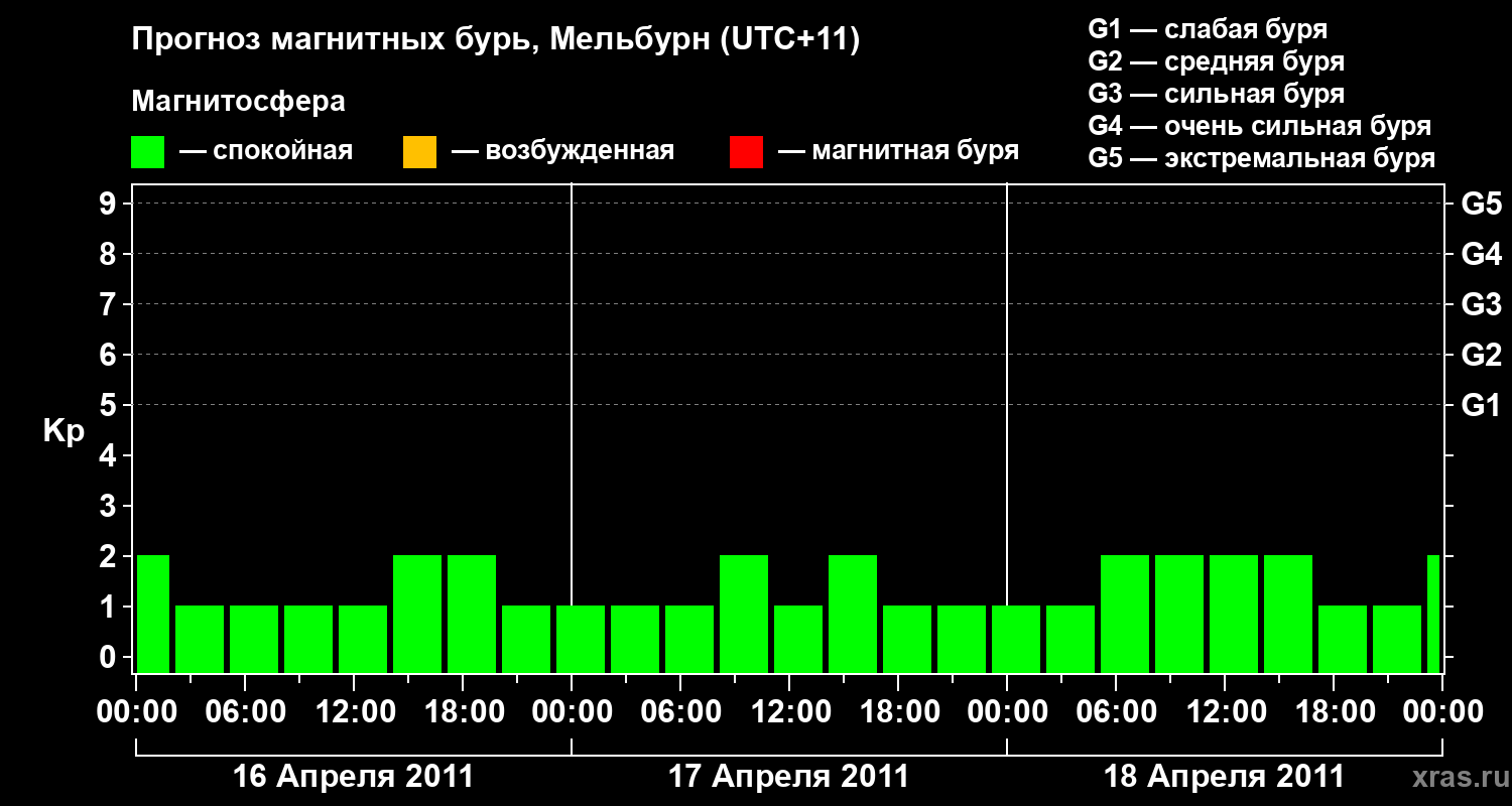 Прогноз магнитных бурь в Мельбурне — 16 апреля 2011 года