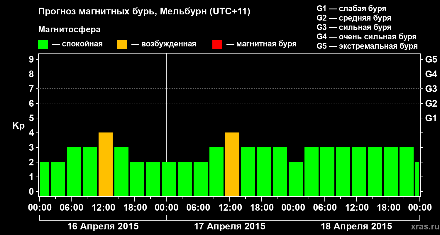 Прогноз магнитных бурь в Мельбурне — 16 апреля 2015 года
