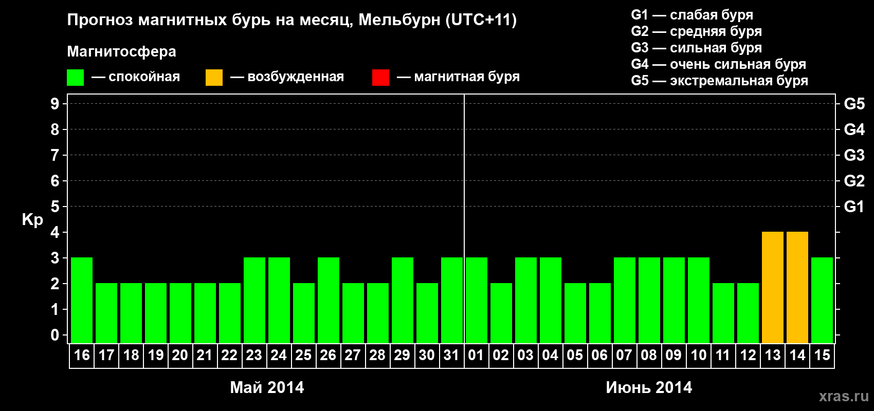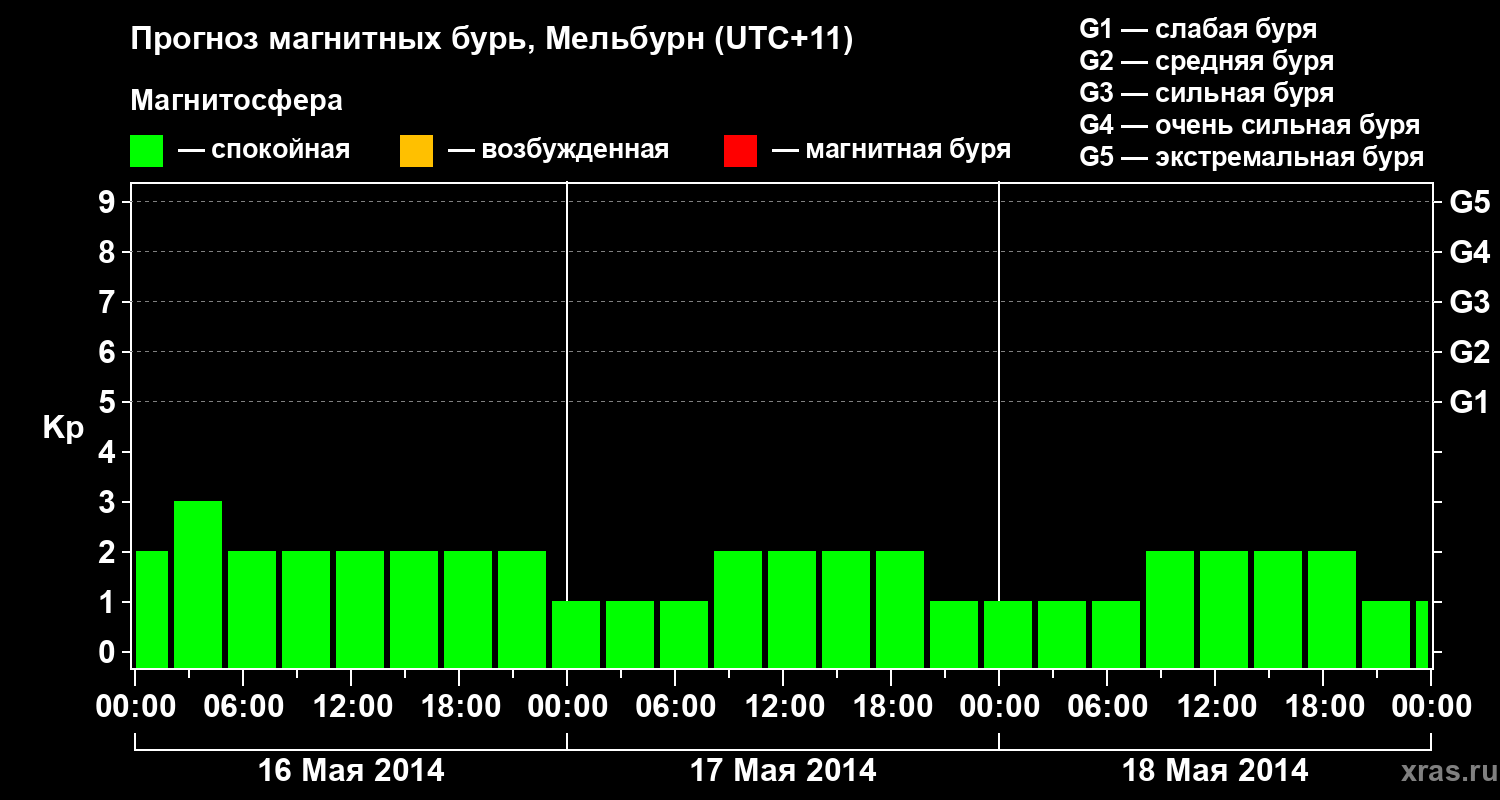 Прогноз магнитных бурь в Мельбурне — 16 мая 2014 года