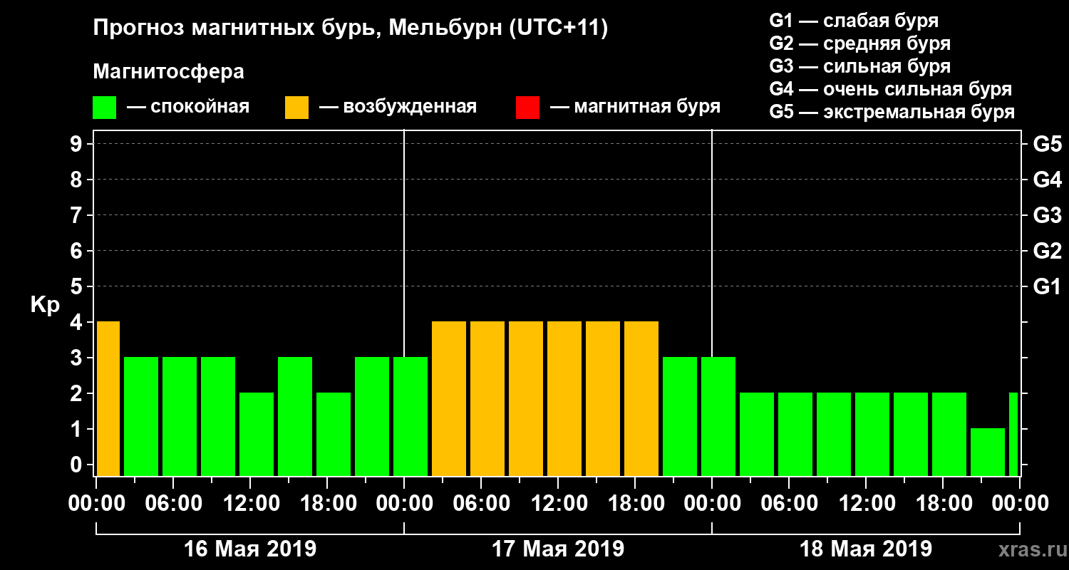 Прогноз магнитных бурь в Мельбурне — 16 мая 2019 года
