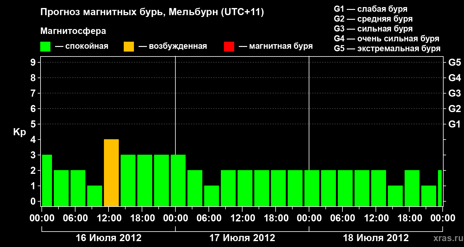 Прогноз магнитных бурь в Мельбурне на 16 июля 2012 года